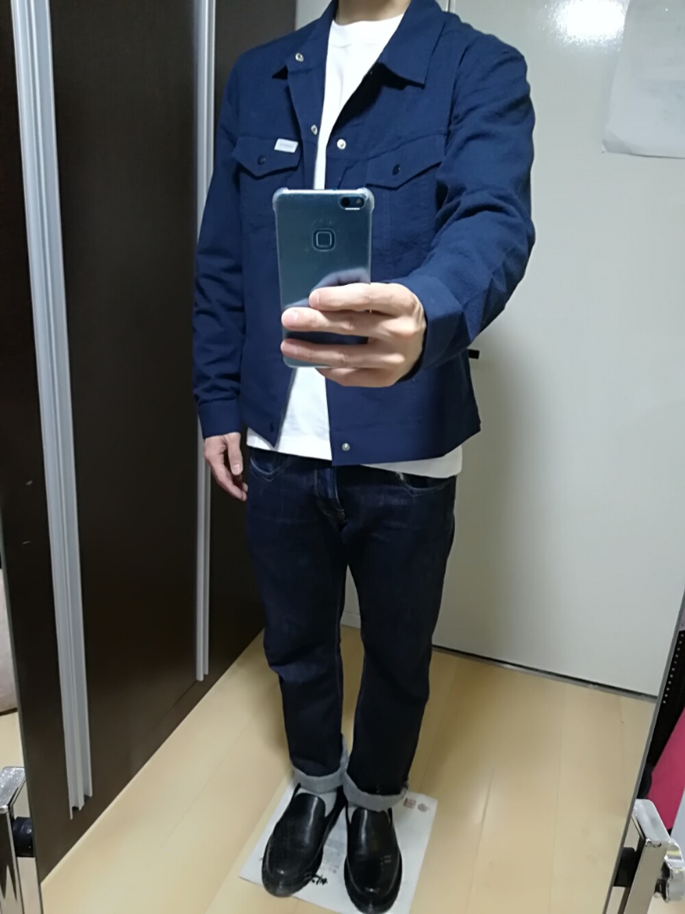 ネイビーホワイト タイトすぎず緩すぎずなシルエットが好き。 どんどん暖かくなってきたけど夜はまだ涼しい。