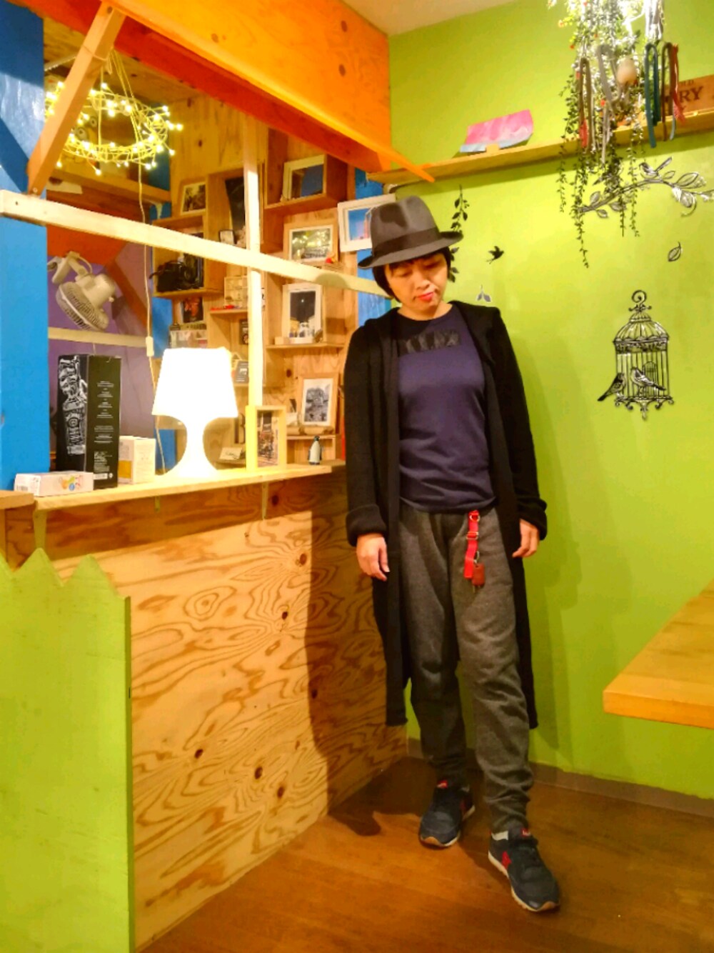 ニットコートはもらいもの、TシャツはUNIQLOのパックTに使わなくなったリボンを縫い付けました~