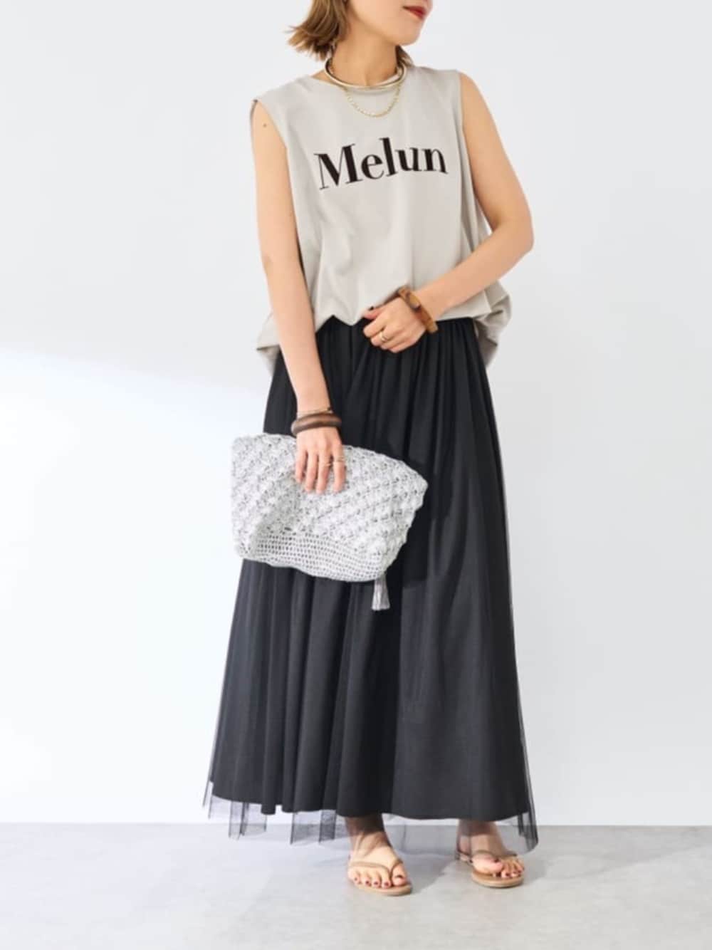 ロゴトップス×チュールスカート チュールスカートはリバーシブルで楽しめます