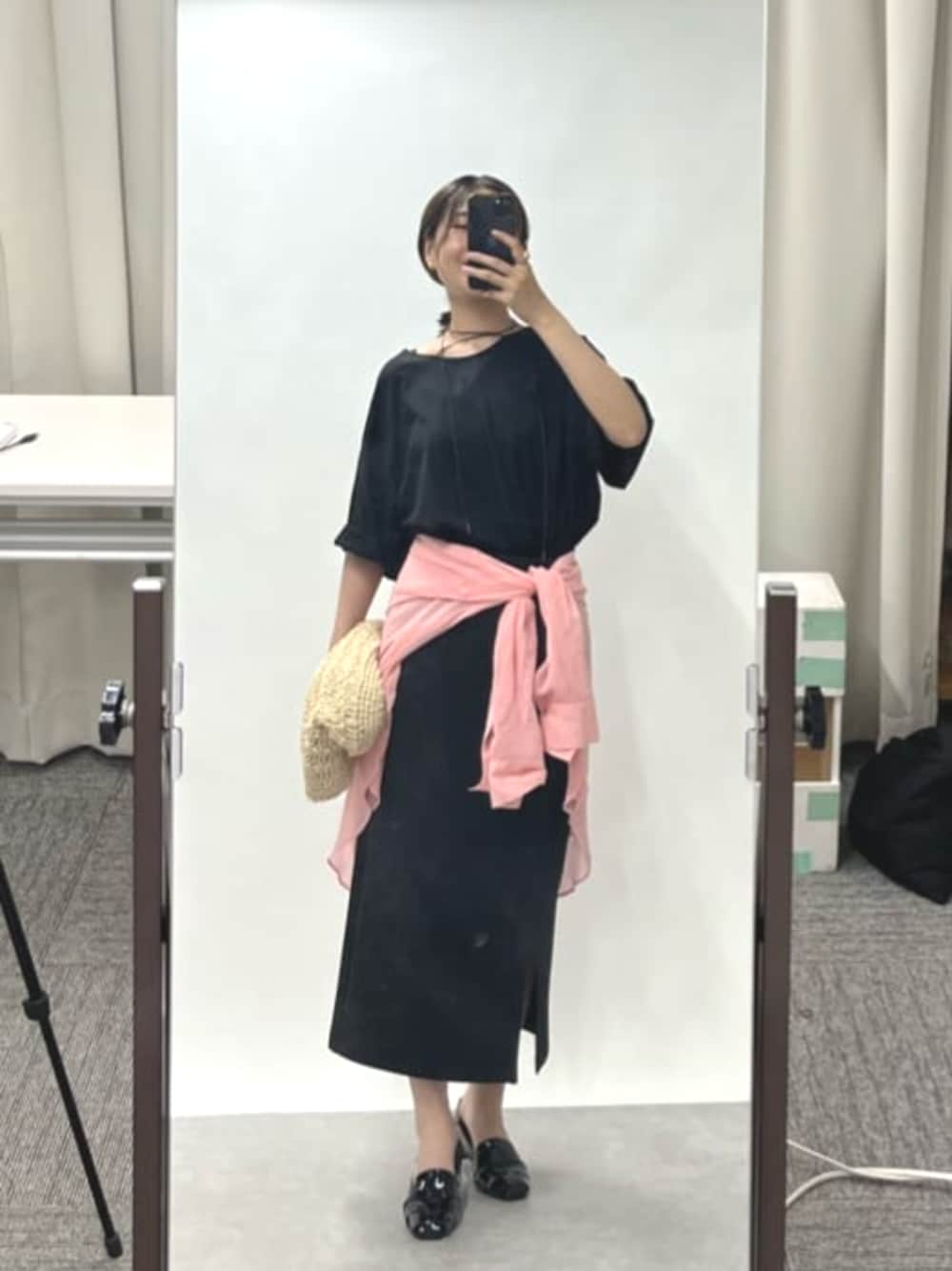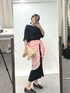 ストレッチが効いているスカートですが、綺麗見えするのでTシャツとラフに合わせてもきちんと感のでやすいコーデです。