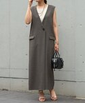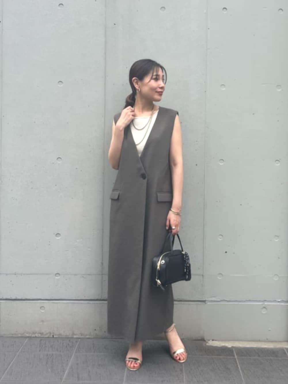 深Vネックのジャンスカなのでスッキリ見えが叶います。インナー次第で通年使えるアイテムです。