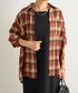 サッと羽織としても使えるチェックシャツですが、胸元で結んでビスチェ風にも着ていただけます。