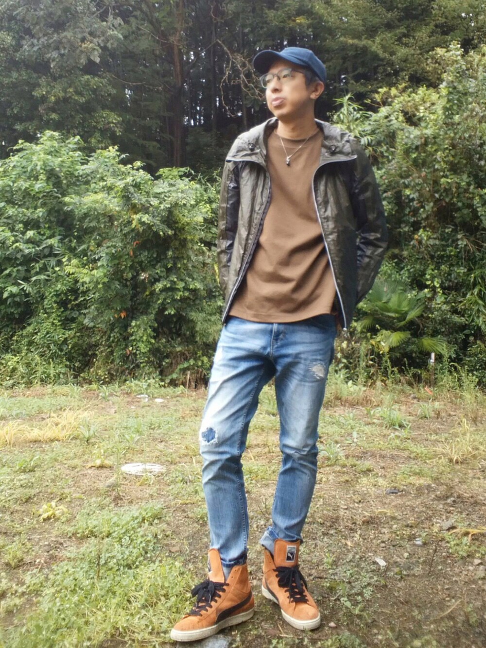よく食べ寝て音楽聴き旅ほぼデニムのデニムパンツ「SHELTECH SLIM FIT STRAIGHTデニム」を使ったコーディネート