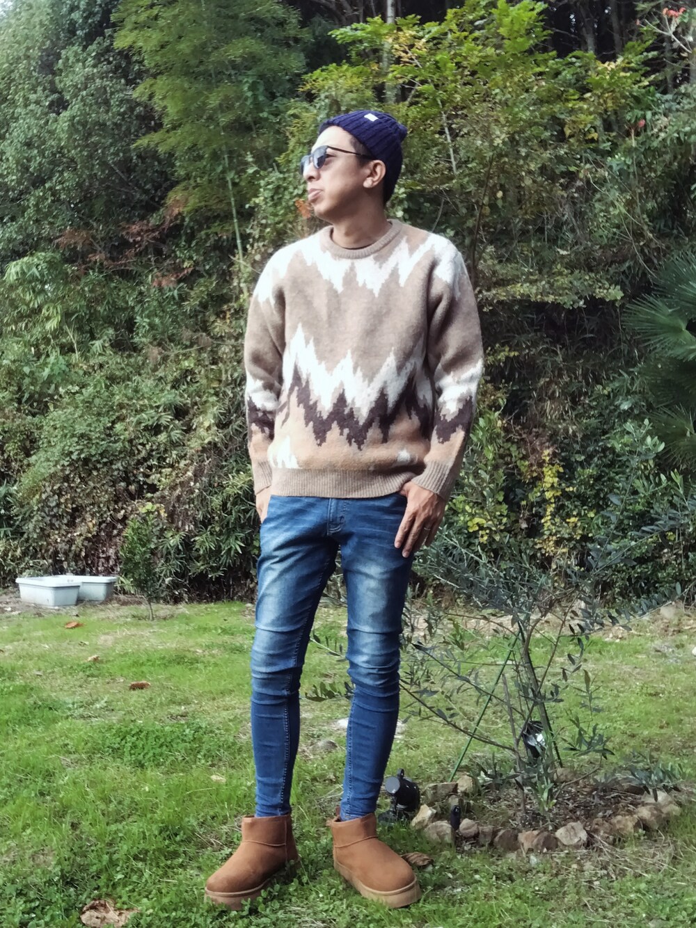 セールで購入したニット❗️なかなか着れないと思ってたけどやっと着れた☺️ めちゃくちゃ暖かくて、柄も40代にはちょうどいい😄