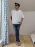よく食べ寝て音楽聴き旅ほぼデニムのTシャツ/カットソー「接触冷感【MINUS】オーバーサイズ Tシャツ」を使ったコーディネート