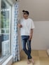 今日も白T×デニム。 だけど、TシャツはADAM ET ROPÉの接触冷感タイプで、肌ざわりが本当に気持ちいいやつ。 裾の切り替えデザインもさりげなくて、シンプルな中にちょっとした違いを感じられるのが好き。 デニムはいつもより少し濃いめを選んで、全体を引き締めつつカジュアルに。 キャップとサングラスで、ほんのりストリートなニュアンスもプラス。 定番だからこそ、素材とシルエットでちょっとずつ遊ぶのが気分。