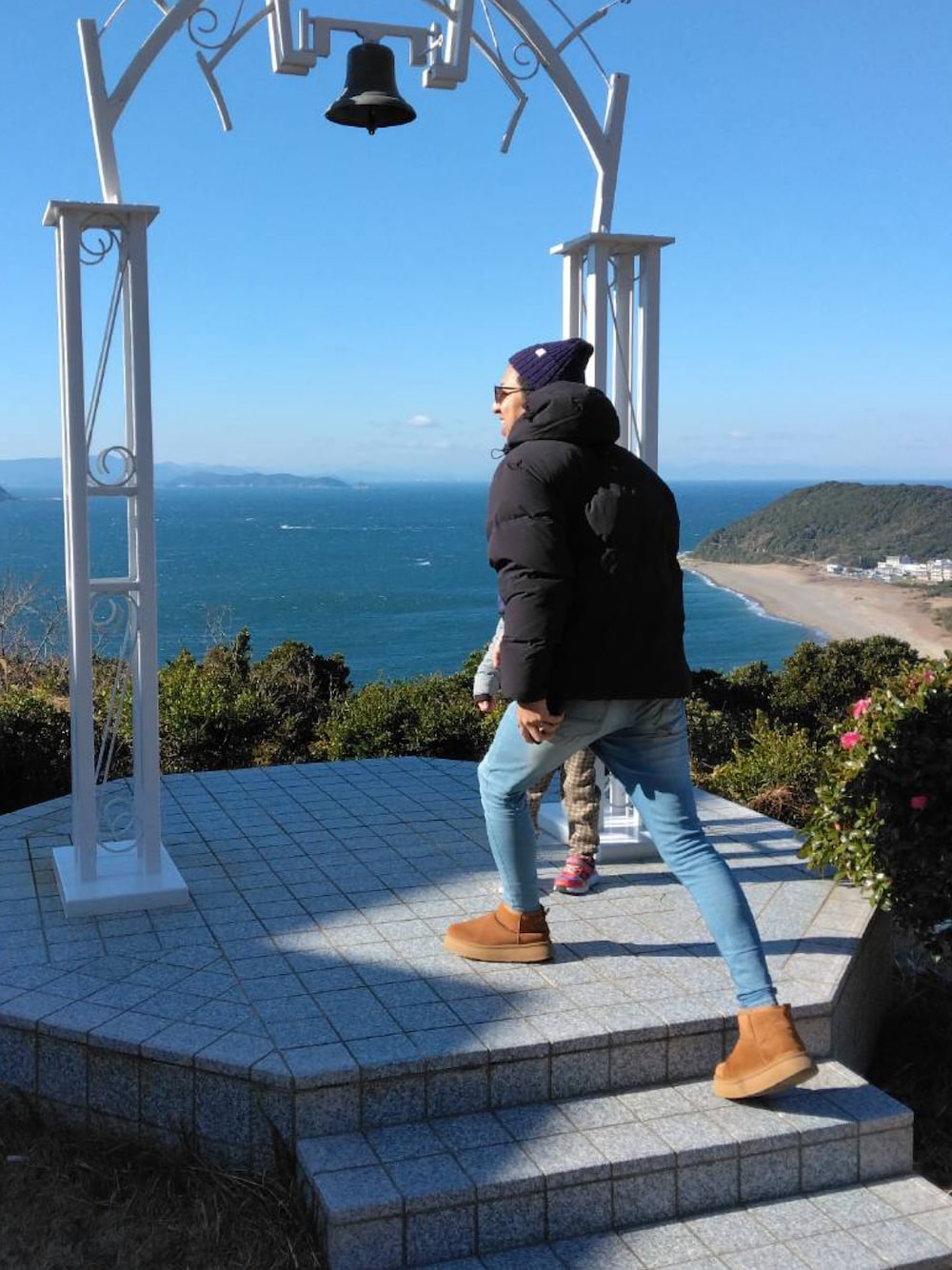 伊良湖旅行での一枚。 めちゃくちゃ寒かった! 青すぎる空と海、風は冷たいけど気持ちは軽い。 防寒はしっかり、気分は前向きで。