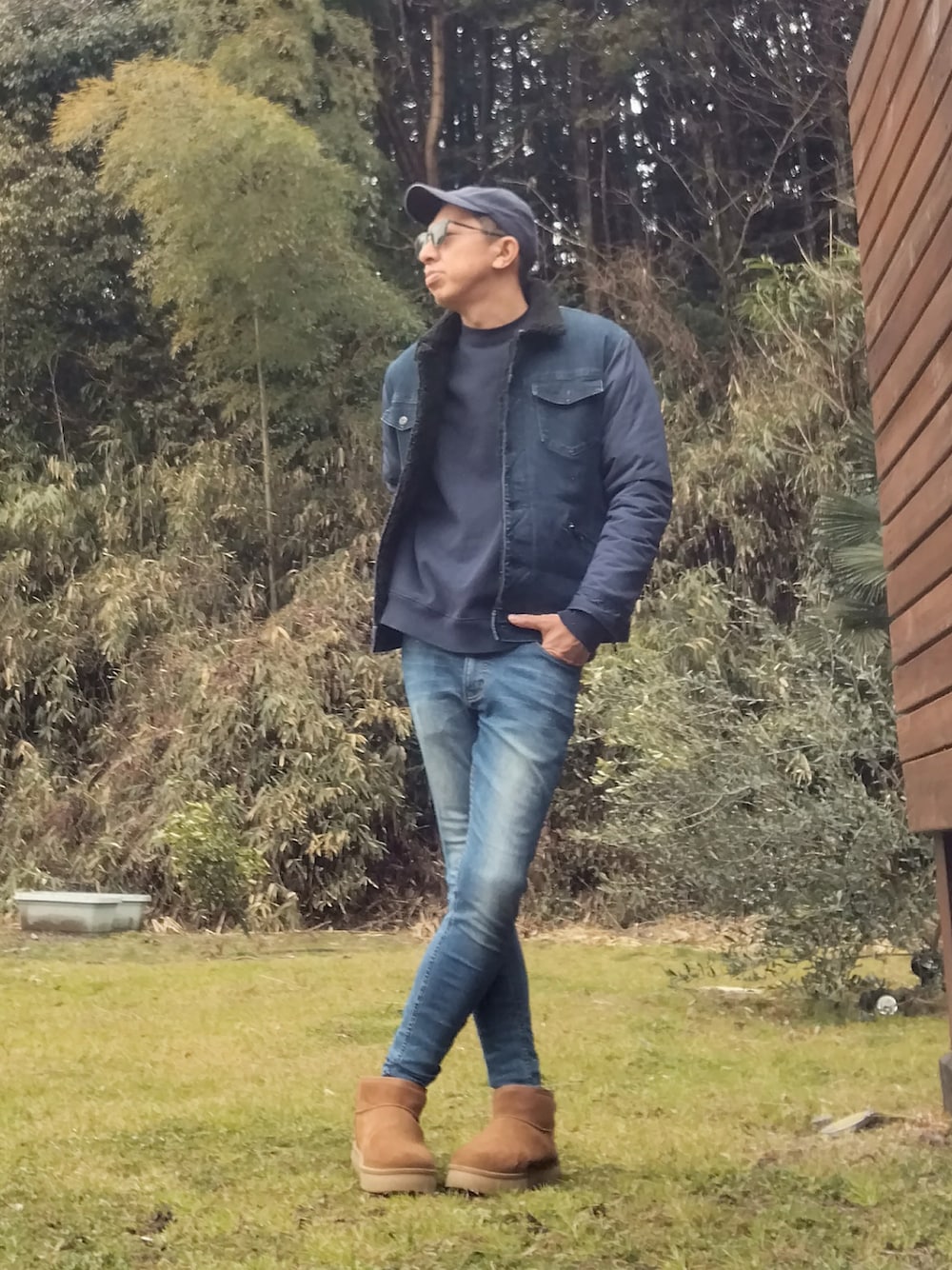よく食べ寝て音楽聴き旅ほぼデニムのブルゾン「ボアブルゾン」を使ったコーディネート
