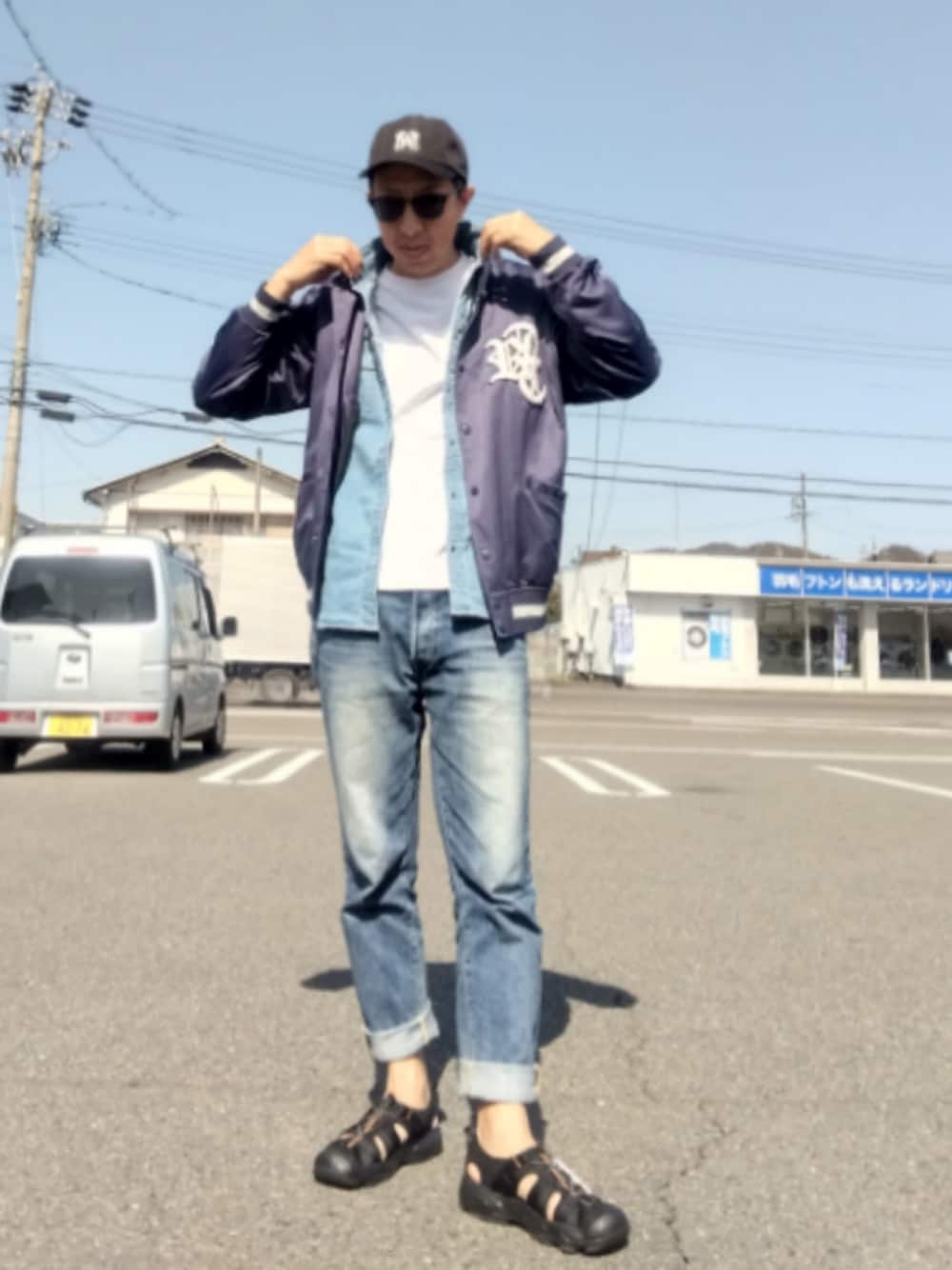 よく食べ寝て音楽聴き旅ほぼデニムのキャップを使ったコーディネート