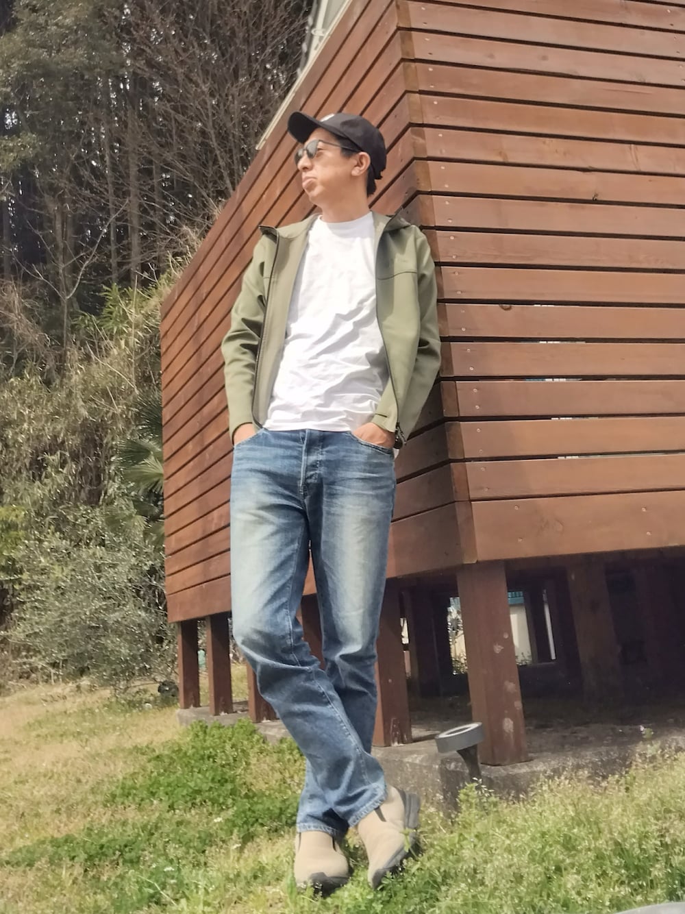 シンプルな白T×デニムに オリーブの軽アウターでちょい渋めに。 気張らずラフだけど、どこか落ち着く感じが今の気分。 こういう“普通だけどなんかいい”コーデ、どう思います?