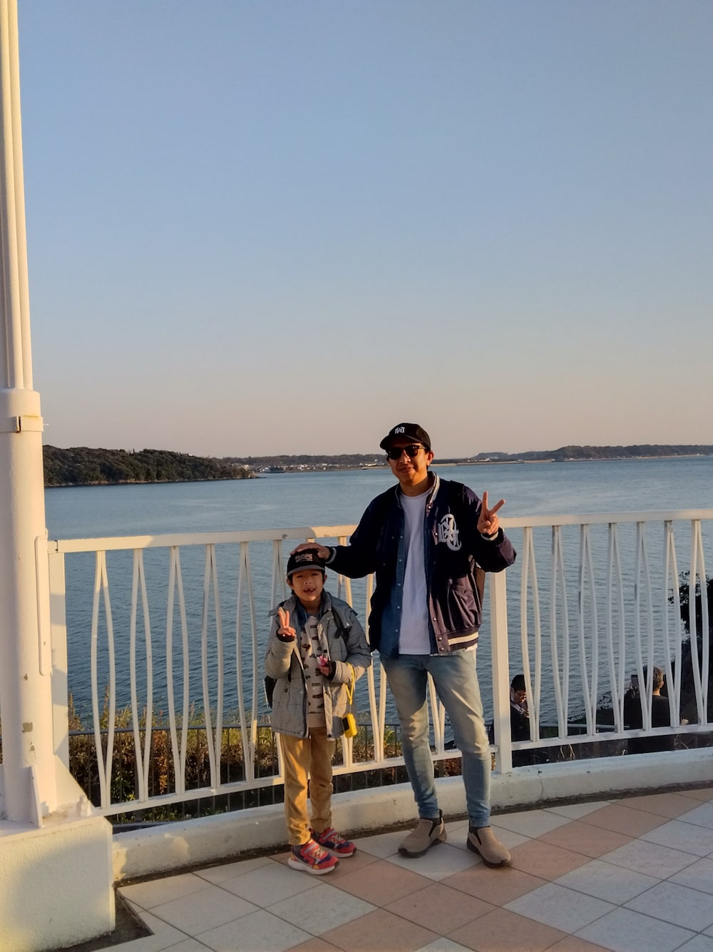 旅先での1枚📸 浜名湖をバックにのんびり。 ネイビーのスタジャンにデニムを合わせたシンプルコーデ。 実は中にデニムシャツを1枚仕込んで、さりげなくレイヤードしてます。 子どものカラーでちょっと遊びをプラス。 こういう何気ない瞬間が一番好きかも。 みんなは旅先でどんな服着る?