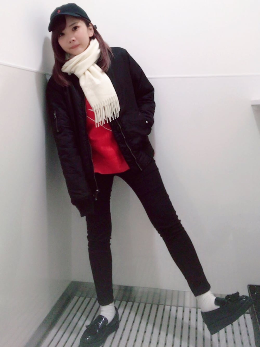 2018.01.11(Thue.) キャップ:polo ralph lauren MA-1:WEGO トレーナー:NIKE パンツ:GU 靴:index 個人的には結構好きなブラックコーデ🎧✨ NIKEのトレーナーは弟にもらった! 冬まだ終わらないのかなあ〜〜⛷❄️