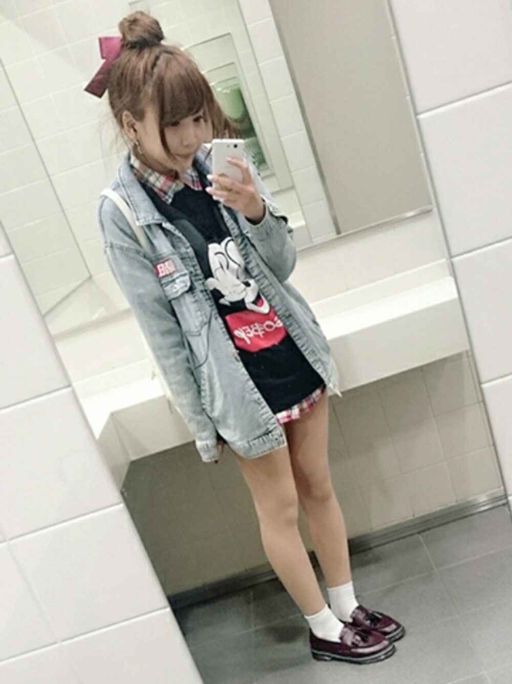 2016.04.21(Thue.) ジャケット:しまむら チェックシャツ:? トップス:sevens リュック:spinns 靴:通販 丸顔を隠すために髪の毛は基本おろしてるんだけど かなりひっさしぶりにおだんごした👀!! あえて後ろにりぼんつけたよ♩♬かわいい~💓 ずぼん履いてる?!シリーズです。(笑) ちゃんと中に履いてます安心してください。(笑)