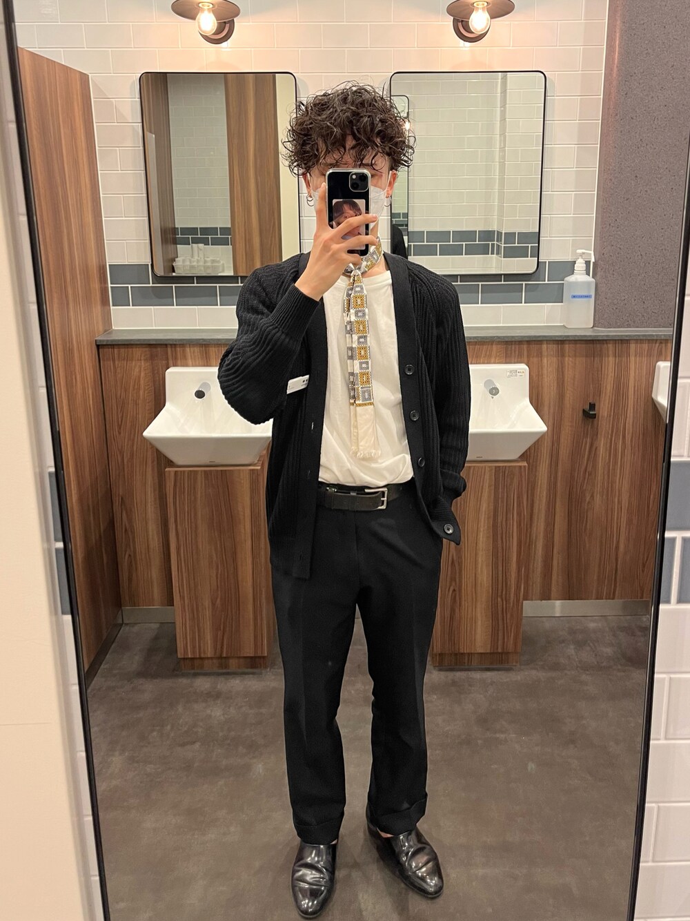 珍しくシンプルなモノトーンコーデを。 スカーフをアクセントに。