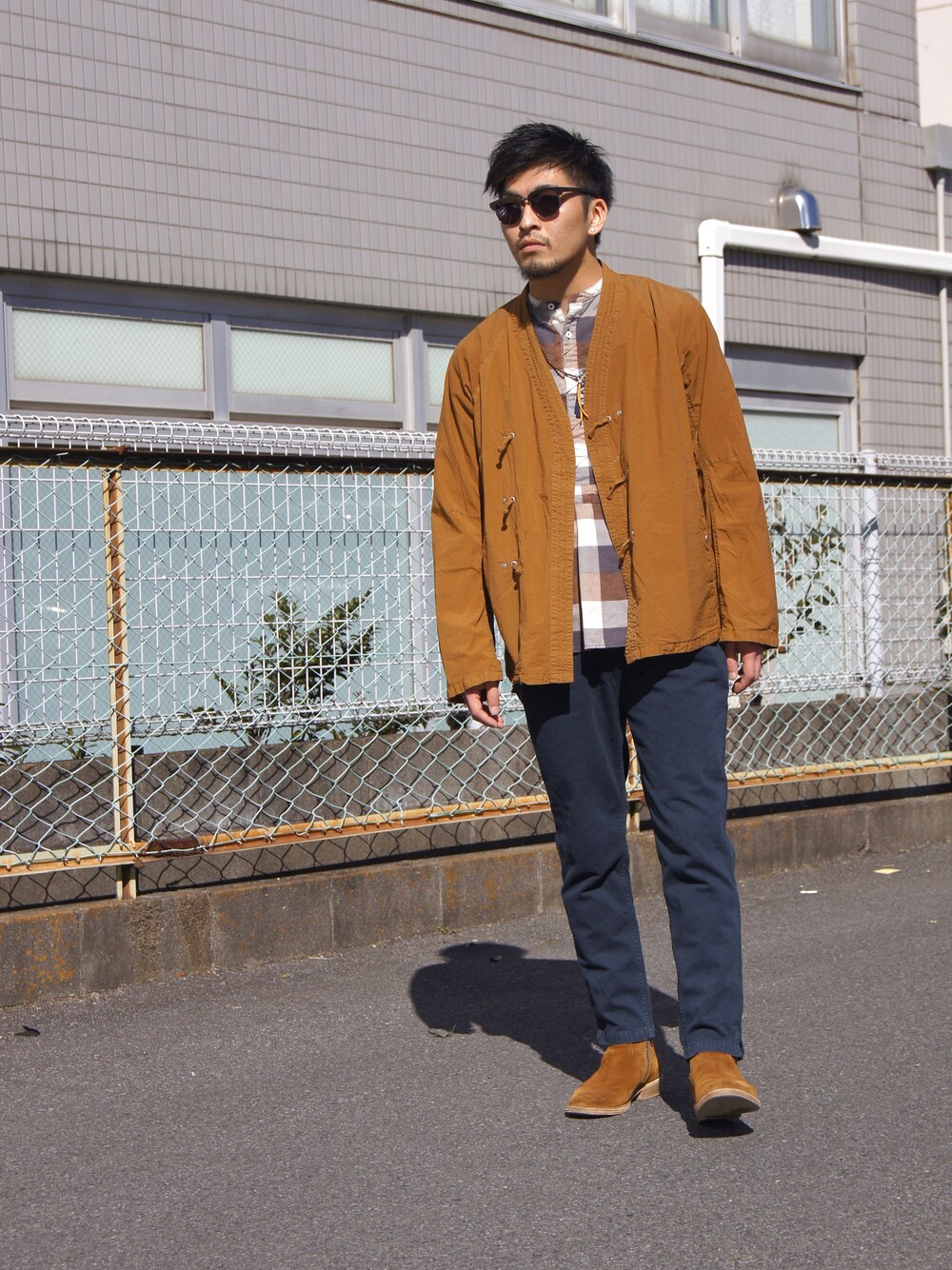 nonnative ジャケット MASTER JACKET NYLON TUSSAH OVERDYED 37,800- シャツ MASTER PULLOVER SHIRT COTTON NEL BLOCK CHECK PRINT 28,080- パンツ CLERK ANKLE CUT TROUSERS RELAX FIT COTTON CHINO CLOTH OVERDYED 28,080- Shwood サングラス EUGENE - DARK WALNUT SILVER 27,000- MIKIA ネックレス Necklace / Suede Bandana (ONYX / TIGEREYE) 15,120- Rags McGREGOR ブーツ SIDE ZIP BOOTS Rags McGREGOR×nonnative 92,880-