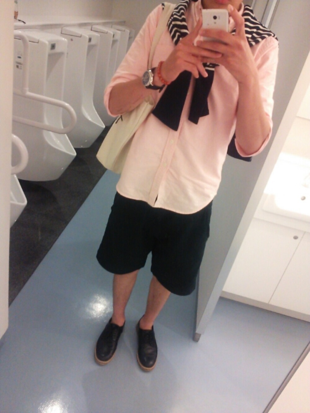 ピンクシャツ…WEGO ボーターTシャツ…WEGO パンツ…WEGO シューズ…忘れた 時計…orobianco トートバック…ジュンメン