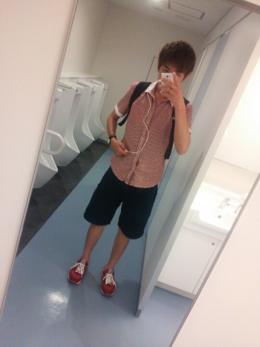 ギンガムチェックシャツ…謎 パンツ…WEGO シューズ…メンズビギ(admiral) 時計…orobianco リュック…アウトドア