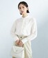 【身長165cm】 〈サイズ感〉 ジレ: ややゆったり。普段Mサイズ着用で、ブラウス、カットどちら着ても38サイズがジャスト。 トップス: 標準的。165cm、freeサイズ着用でヒップが隠れるくらいの着丈。 ボトムス: ウエストややゆとりあり。165cm、38サイズ着用でくるぶしにかかるくらいの着丈。 シューズ: 標準的。普段24.5cm着用、足幅狭め、甲低めだと24cmがジャスト。靴下やタイツを合わせるなら24.5cmが履きやすい。 〈スタイリングポイント〉 人気のセットアップに春らしいレースカットのシャツを合わせたスタイリング。 ブローチやアクセサリーを合わせれば、入園式や入学式のセレモニーシーンにもオススメです。