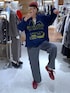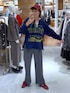 出勤コーデ! 今日はおニューのトップスとパンツでるんるん出勤しました❤️🔥 リメイク風プリントスウェット/L こちらは一目惚れした古着好きにはたまらないアイテム。 今日はまだ暑さも残ってるのでボーダーのタンクトップを偲ばせて🦓 これからだったらレイヤードTシャツや総レースのハイネック、タートルなど合わせていっぱい着回したいと思います☺️ スッキリイージーパンツ/L 入荷した時からずーっと狙ってたこちらのパンツ。 色どれにしようかなーって悩んでたんですけど、グレーのパンツを持ってなかったのでグレーに絞り、チャコールグレーか色が混じった杢グレーか悩み、カジュアルにも使える結局杢グレーにしました🩶 高身長でも着丈いい感じで、ウエストゴムで楽ちんなのに、 シルエットきれい。 静電気軽減など嬉しい6機能付きなの3990円とお手頃価格🤩 そして今日はその他のキャップやスニーカー、イヤリング、リング全部赤で統一❤️ おすみのこだわりコーデです✌️ 🌼🌼🌼 高身長、ママコーデ、体型カバーのお悩みに効くコーデ、 個性派、カジュアル、カラフル好きさんに差さるコーデ発信中📡 インスタグラムもやってます! プロフィールからご覧ください☺️ 商品詳細は写真タップしていただくか 下の方からご確認ください☺︎ ------------------ ファッションは自由だー🗽をモットーに ママになってもおしゃれを楽しみたい、楽しんで欲しい、3兄妹ママです🌈 フォロー、いいねが励みになりますので是非お願いいたします!