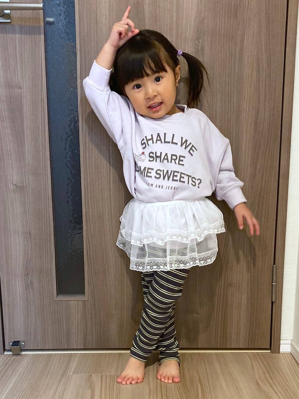 \トムとジェリーのスウェットで楽ちんお出かけコーデ‼️/ のびのび楽ちんなレギンスとスウェットで、男の子っぽくなりがちなので、女の子らしさをプラスしたくてレースのスカートを♡ プリンセス〜と言ってとっても喜んでいます☺️ 動きやすく楽ちんで、洗ってもへたりにくいので、 保育園や幼稚園着にもおすすめです! トップス:100 ボトムス:100 ------さくちゃんDATA------ 90cm/3歳/100サイズ着用 🌼🌼🌼 174cm・高身長3兄妹ママの “インしない”体型カバーコーデ👖や、 着回し、丈くらべなど発信しています📡 フォローで毎日の服選びがラクになります◎ ▶ 3兄妹ママのコーデ&日常は