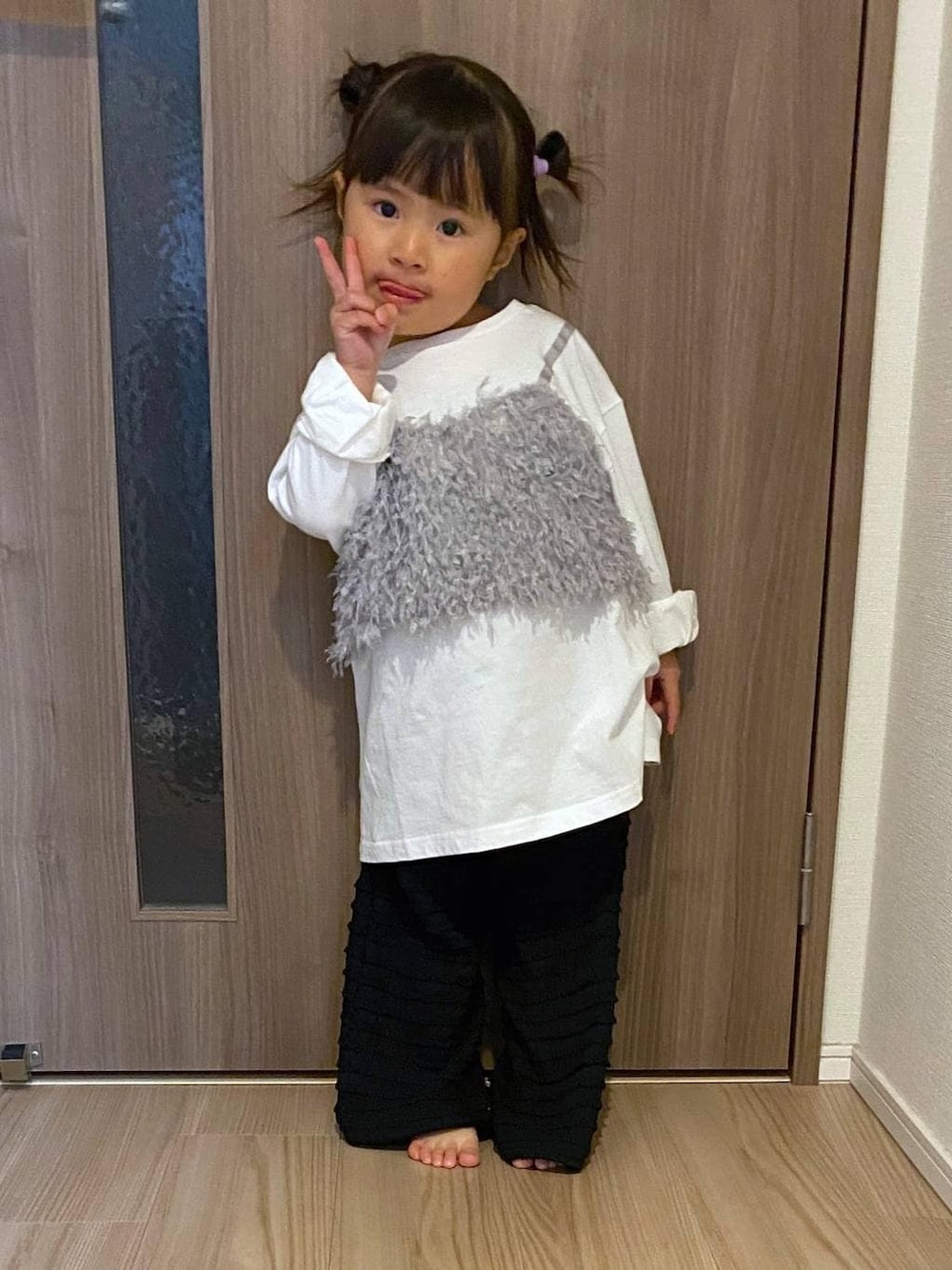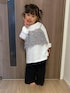 \春のお出かけコーデ/ 大人が着たいくらいのおしゃれな服いっぱい💭 ポコポコした素材の透け感のあるパンツは 90cmの娘には110と大きずきたのでウエストかなり折って穿いてますがまだ床引きずるくらい🙂↕️ 100サイズはネットのみですが、 90サイズの3歳は100がいいです◎ 是非、参考になさってくださいね✨ トップス/110 レギンス/110 ------さくちゃんDATA------ 90cm/3歳/100サイズ着用 🌼🌼🌼 174cm・高身長3兄妹ママの “インしない”体型カバーコーデ👖や、 着回し、丈くらべなど発信しています📡 フォローで毎日の服選びがラクになります◎ ▶ 3兄妹ママのコーデ&日常は