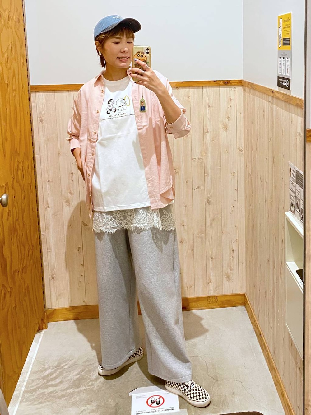 ドラえもん好きさんにはたまらない、 コラボTシャツあります🗣️ ポイントは、メンズライクになりすぎないように レースキャミレイヤードしたところ👆✨ ピクニックや、春のアクティブシーン、お出かけに◎ 親子でぜひ、ドラえもんコーデを🌼 🌼🌼🌼 174cm・高身長3兄妹ママの “インしない”体型カバーコーデ👖や、 着回し、丈くらべなど発信しています📡 フォローで毎日の服選びがラクになります◎ ▶ 3兄妹ママのコーデ&日常は