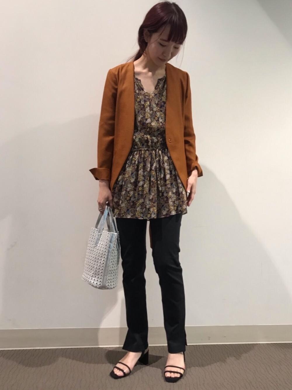 大人気のトリアセジャケット。 ペイズリー柄のブラウスと合わせると カジュアル感がより増し着崩して頂けます。 ジャケット(size:36)トップス(size:FREE)パンツ(size:36)