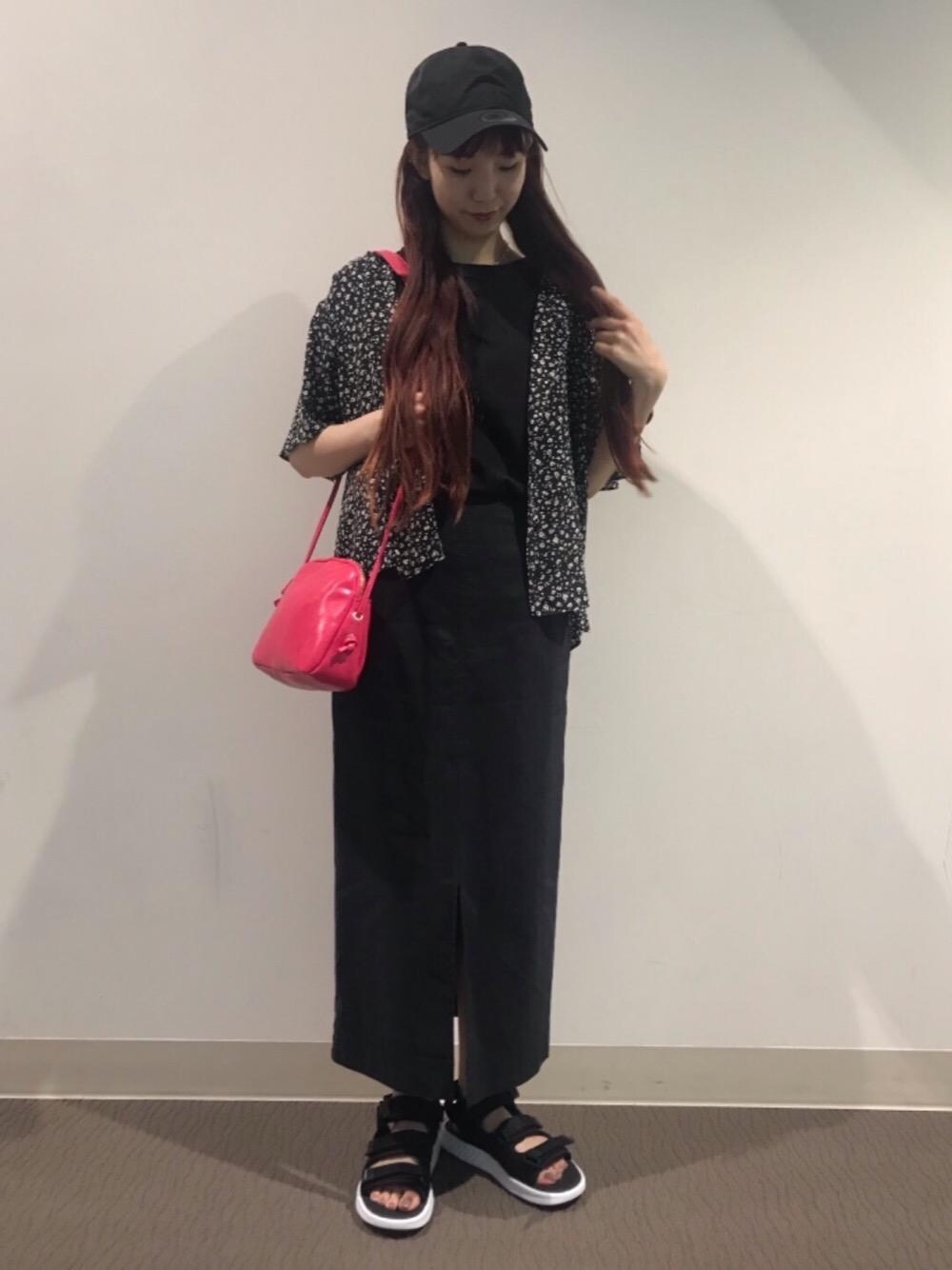 全体的にカジュアルで スポーティーな印象にまとめ ワンポイントに花柄のブラウスを 持ってくることでスポーティになりすぎず 女性らしい印象にしました。 また黒のワントーンにバックの ビビットカラーのピンクを 持ってくることで夏らしい季節感を 感じれるコーディネートに仕上げました。 ブラウスsize(free)トップスsize(free)スカートsize(38)