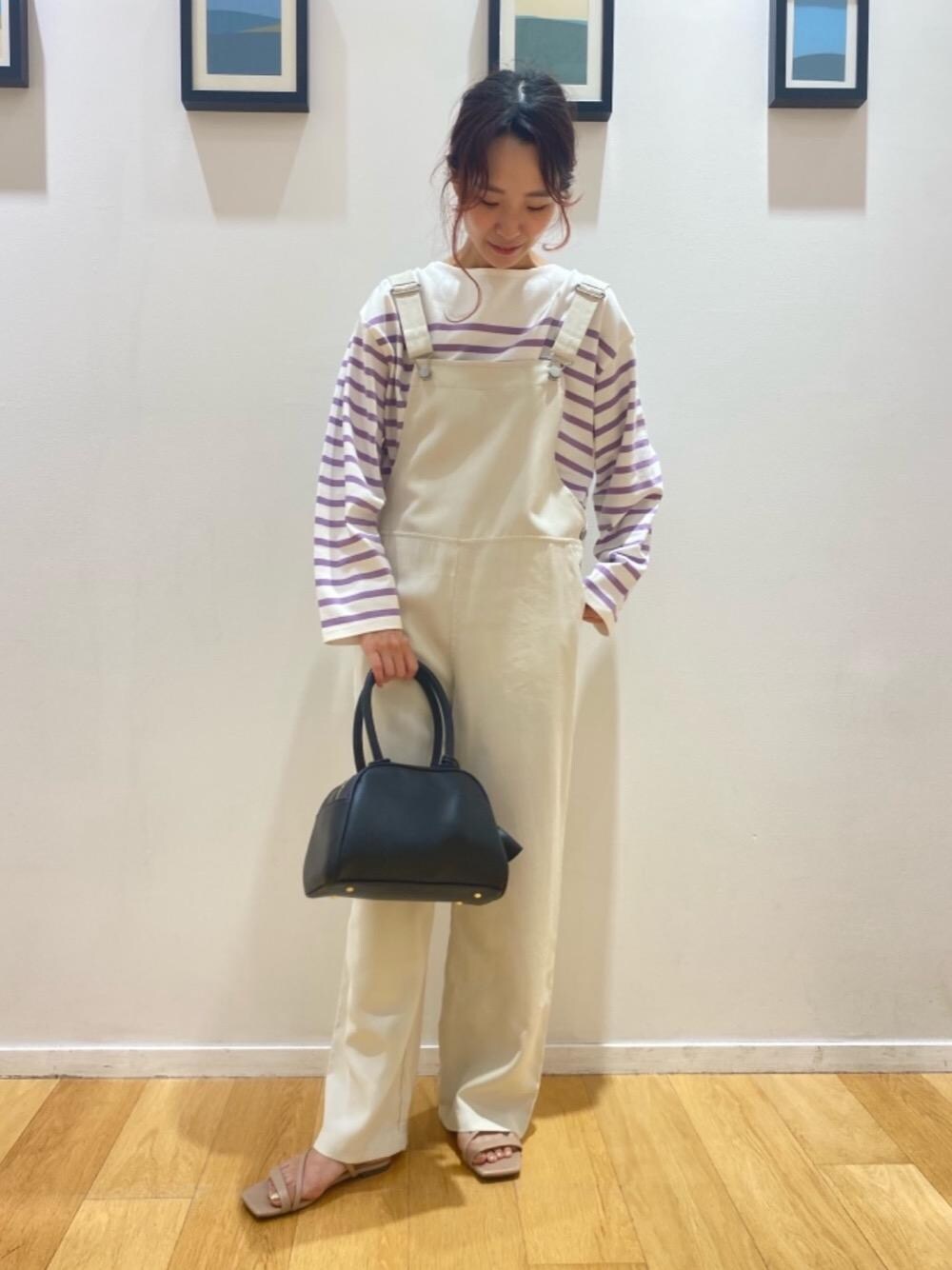 ●身長160cm ●普段サイズ:トップス36/ボトムス36/シューズ22.5cm・23.0cm 【サイズ感】 トップス:ややゆったり サロペット:ややゆったり シューズ:標準的 【コーディネートポイント】 ボーダー×サロペットのベーシックスタイル。 シンプルなアイテム同士のコーディネートですが、ボーダーにカラーを取り入れることで今年らしい雰囲気に変わります。
