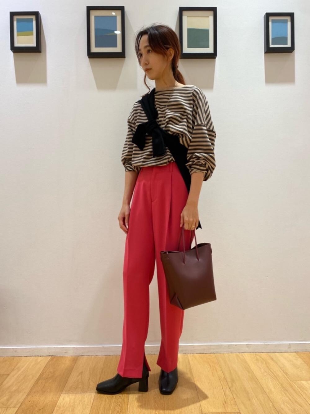 ●身長160cm ●普段サイズ:トップス36/ボトムス36/シューズ22.5cm・23.0cm 【サイズ感】 トップス:ややゆったり パンツ:標準的 シューズ:標準的 【コーディネートポイント】 暗くなりすぎないようワンポイントにピンクのカラーを 取り入れました。