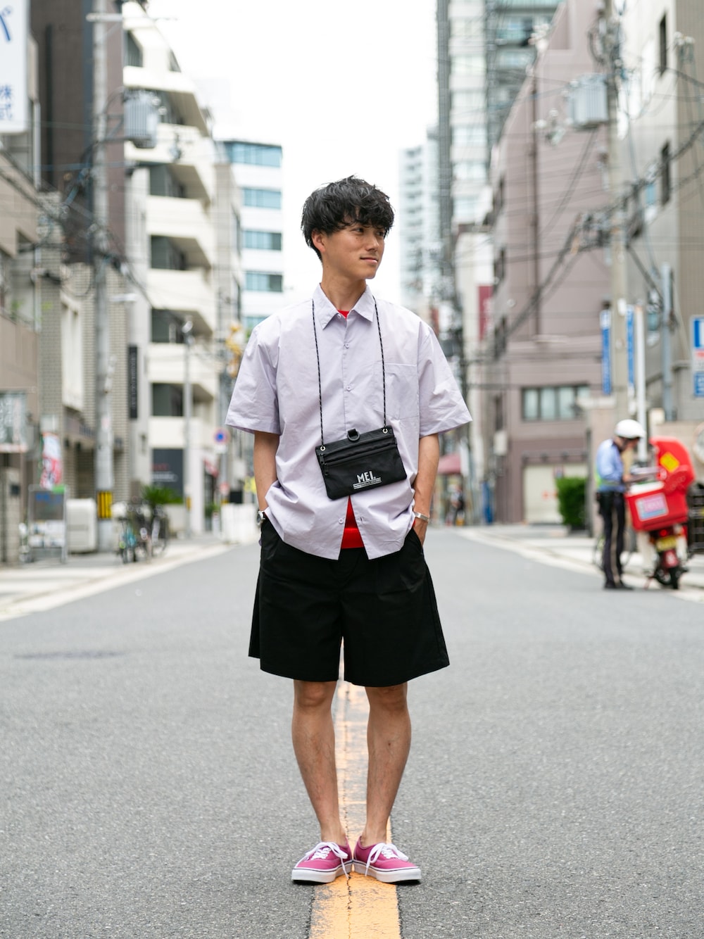 半袖×短パンはゆったりとしたシルエット同士が好きです。 タイプライター生地は独特な雰囲気が出ておすすめですよ。