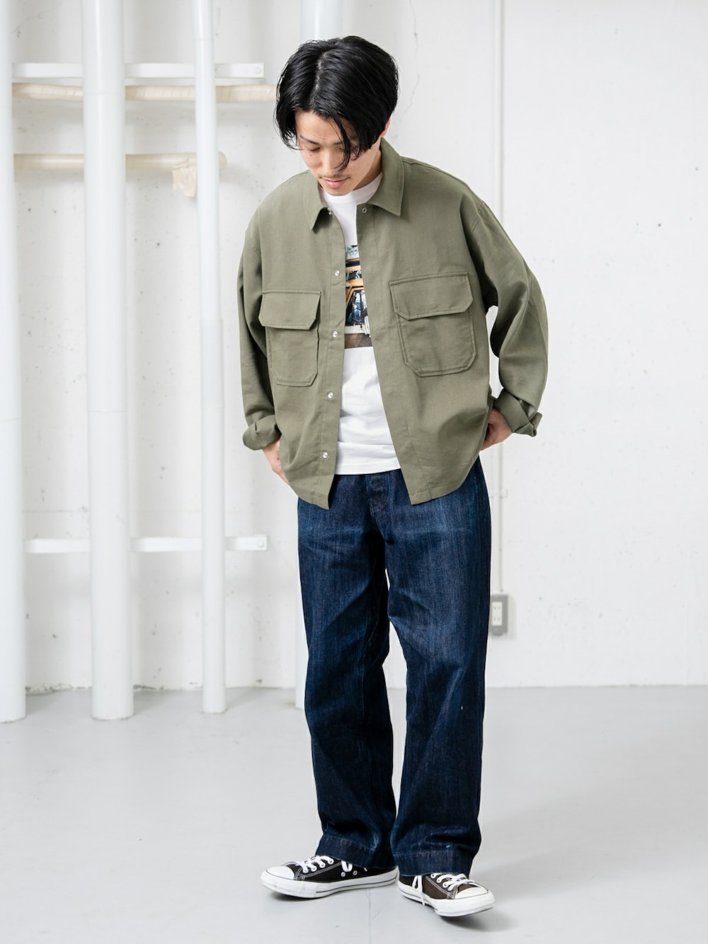 uedaのブルゾン「シャツジャケット」を使ったコーディネート
