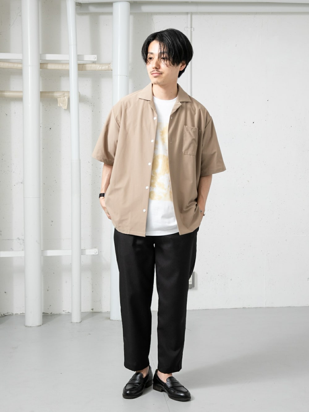 シンプルで使い勝手がいいオープンカラー半袖シャツ! MADE IN JAPANで生地感も良く、程よくゆとりがあるシルエットがトレンドライクな一枚!