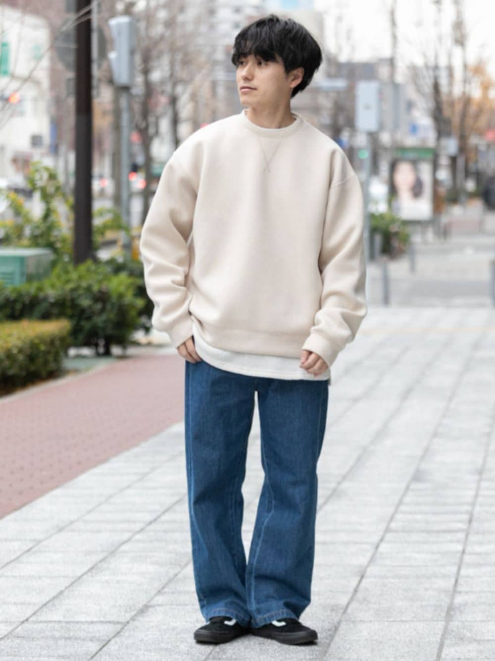 本日はスウェットデザインにダンボール生地を落とし込んだプルオーバーでコーディネートです! トップスはゆったりとしたオーバーサイズシルエットでリラックス感があり、軽くてストレスなく着用できるのがポイントです! シンプルになりがちなプルオーバーなのでワッフル生地のカットソーをアクセントにレイヤードしています!