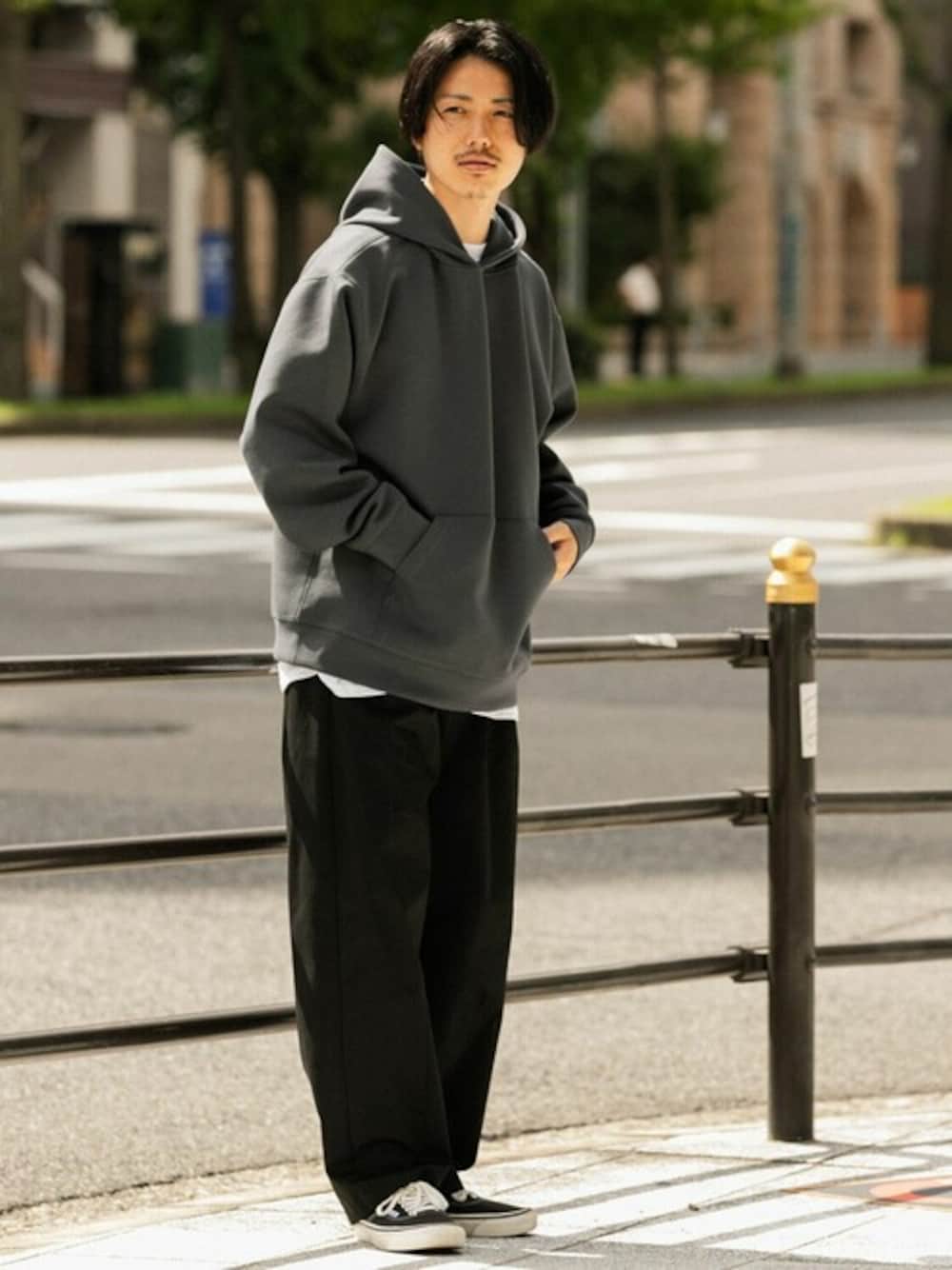 uedaのパーカー「ライトダンボール プルオーバーパーカー」を使ったコーディネート