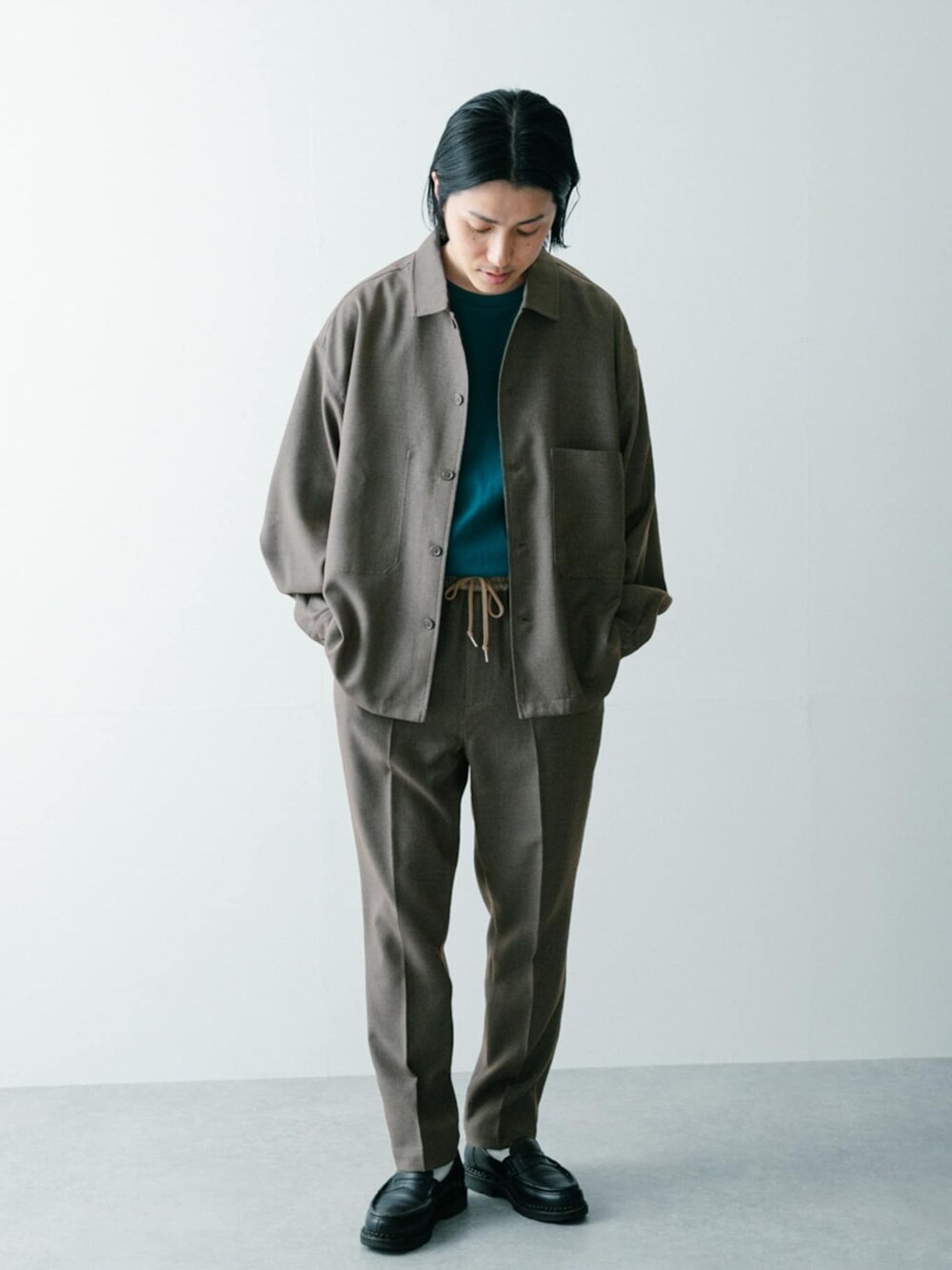 uedaのシャツ/ブラウス「『セットアップ対応』ポリツイル オープンカラーCPOシャツ」を使ったコーディネート
