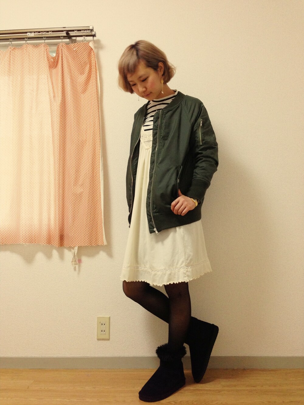 MA-1:JEANASIS tops:E hyphen one piece:green label relaxing shoes:g.u