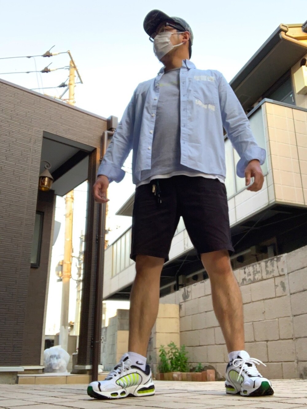 休業中その34 本日2ポーズ目。 Supremeのショートパンツだけ 一緒ですみません… シャツ:Mサイズ Tシャツ:Mサイズ スニーカ:28.5㎝