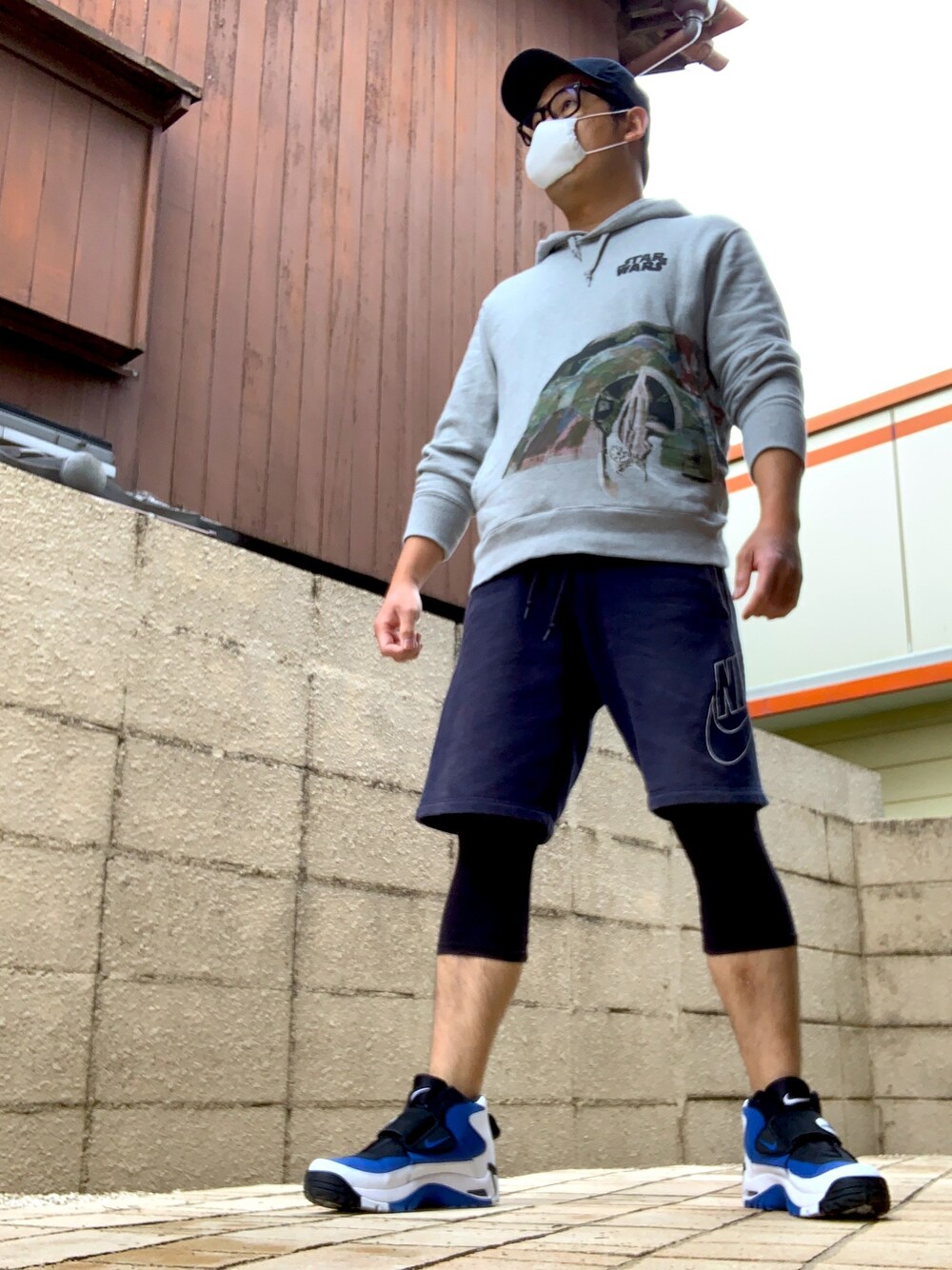 stashさんコーデ。 やはり“青”使いたいので、 スニーカがこのミッションになりがち。 そして本日少し肌寒いので ユニクロの七分のレギンスをin。 パーカ:Lサイズ パンツ:Mサイズ スニーカ:28㎝