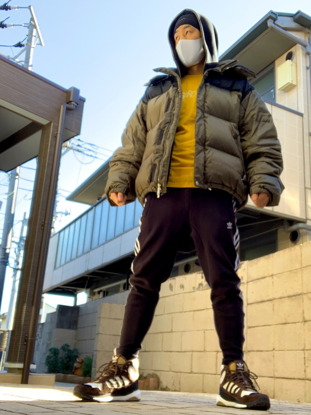 我ながらムカつく顔してる。笑 このダウンジャケットばっかりだけど 今、寒さもピークなので悪しからず… アウター:XL Tシャツ:Lサイズ パンツ:Mサイズ スニーカ:28.5㎝