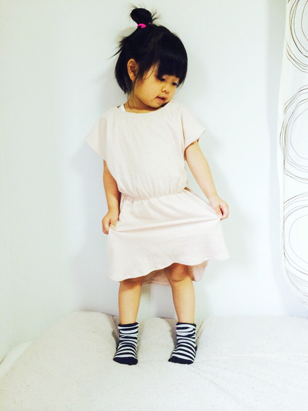 ピンク系のワンピースを着用したキッズの春コーディネートの1枚目の写真