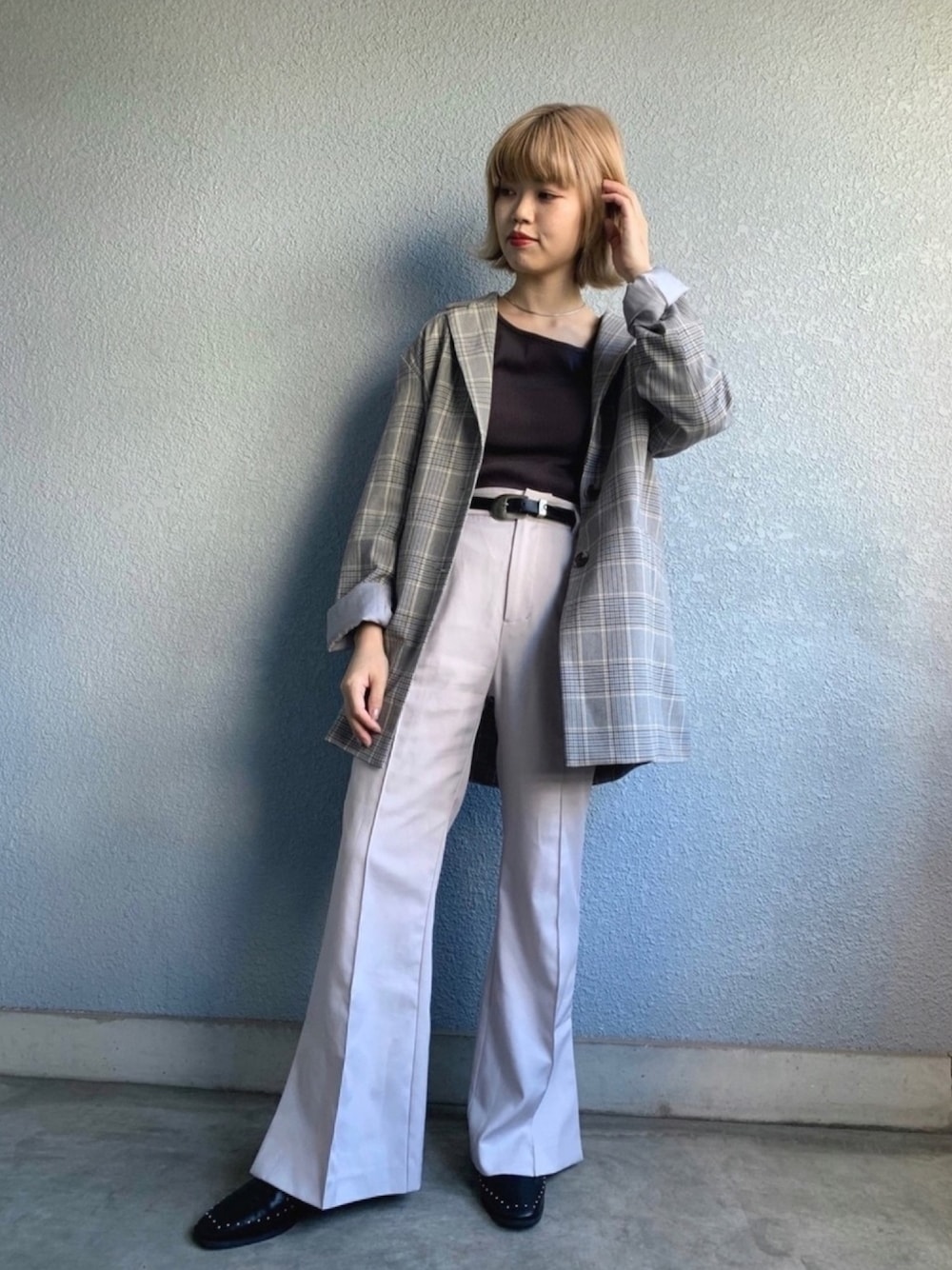 ジャケットを使ったモードカジュアルコーデ🖤 デコルテを見せたのと、裾をロールアップさせて スッキリさせたのがポイントです✨ 【Instagram:@ue___pageboy】 【staffboard:うえ】