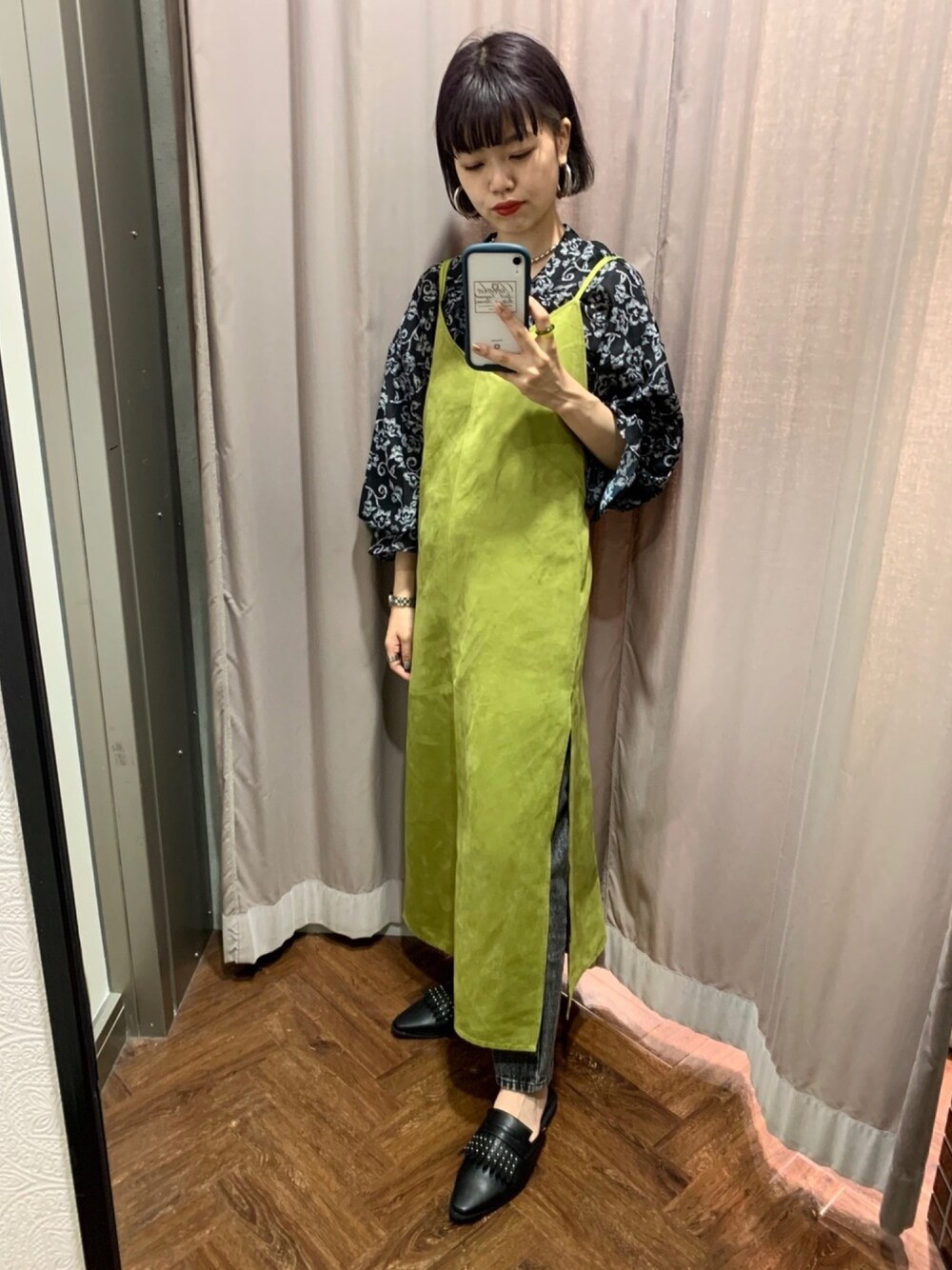 うえ(LAKOLE 京急京阪モール)のワンピース「スエードキャミワンピース【ニュアンスカラーワンピ】」を使ったコーディネート
