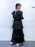 【153cm/骨格ウェーブ】 トップス→前後2wayで使えるブラウス。少し透け感があるので羽織としても使えます。 スカート→丈感足首くらい。ウエストはゴムなのでとっても楽ちん。プリーツが施されているのでティアードですがボリューム感を抑えることができスッキリ見えする1着です✨