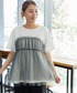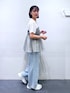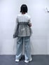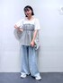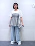 デニム→ウエストフックのデザインがオシャレ。丈少し長め。 トップス→チュールがドッキングしているので1枚でオシャレに着ていただけます。