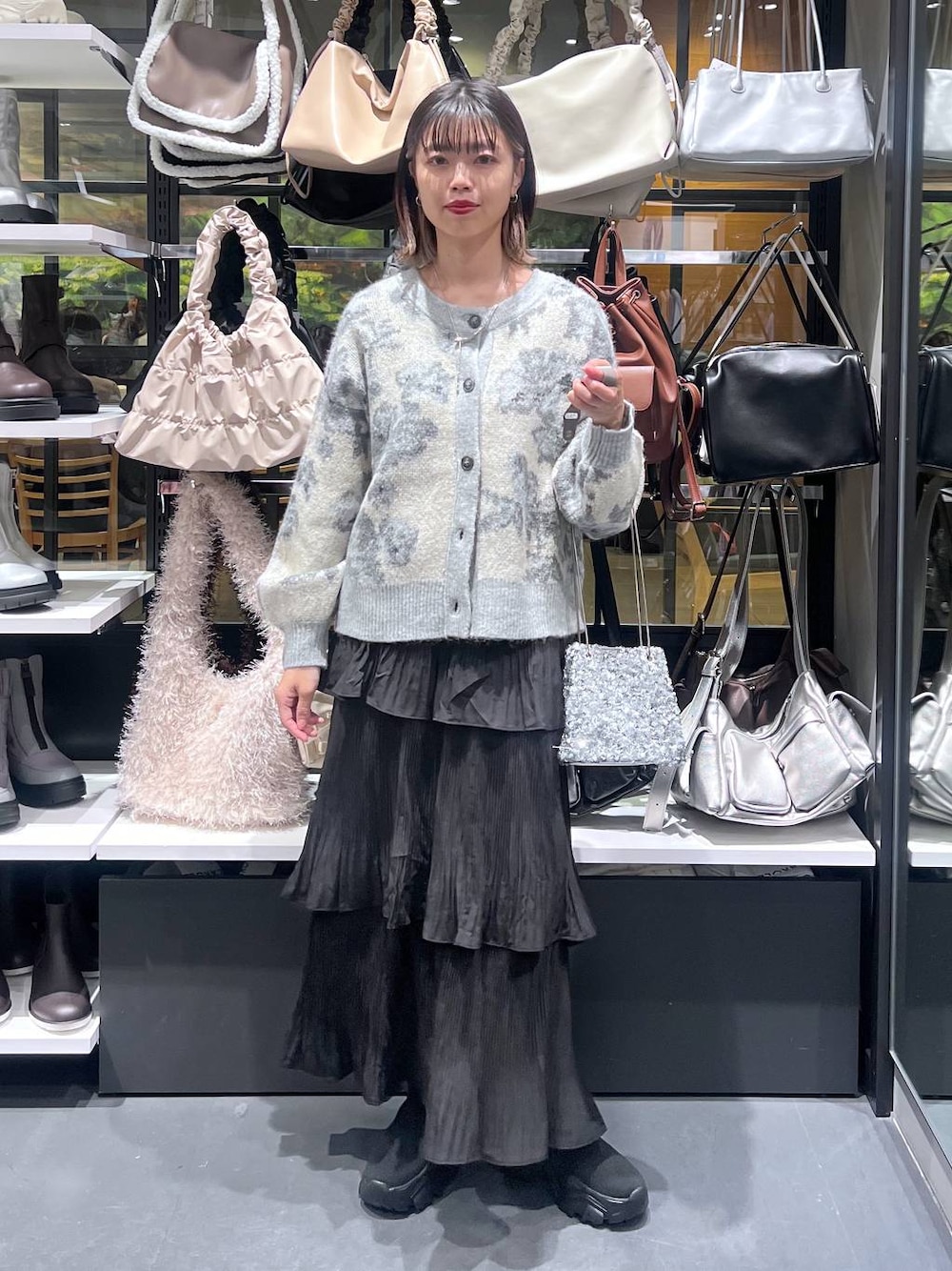 カーディガン→もっちりとした生地感でチクチク感なし。 腰くらいの丈感なのでボトムとのバランス◎ スカート→ウエストゴムで楽ちん。広がりすぎないシルエットなのもポイント。