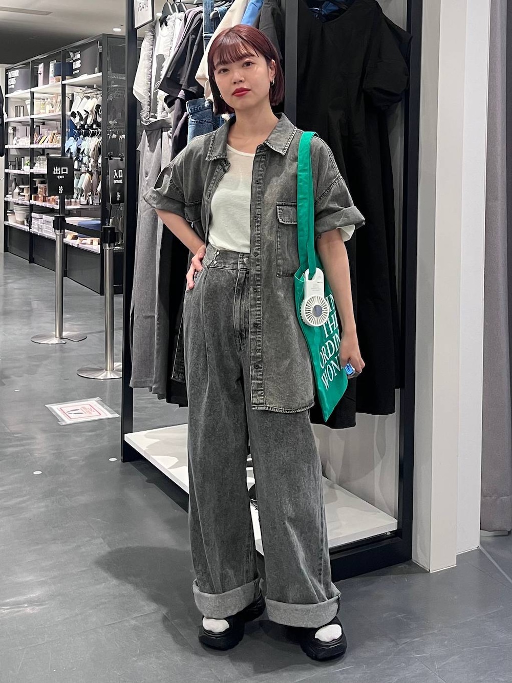 デニムパンツと合わせてセットアップ風に着てみました! パンツ→S着用。丈感少し長めなのでロールアップすると🙆♀️