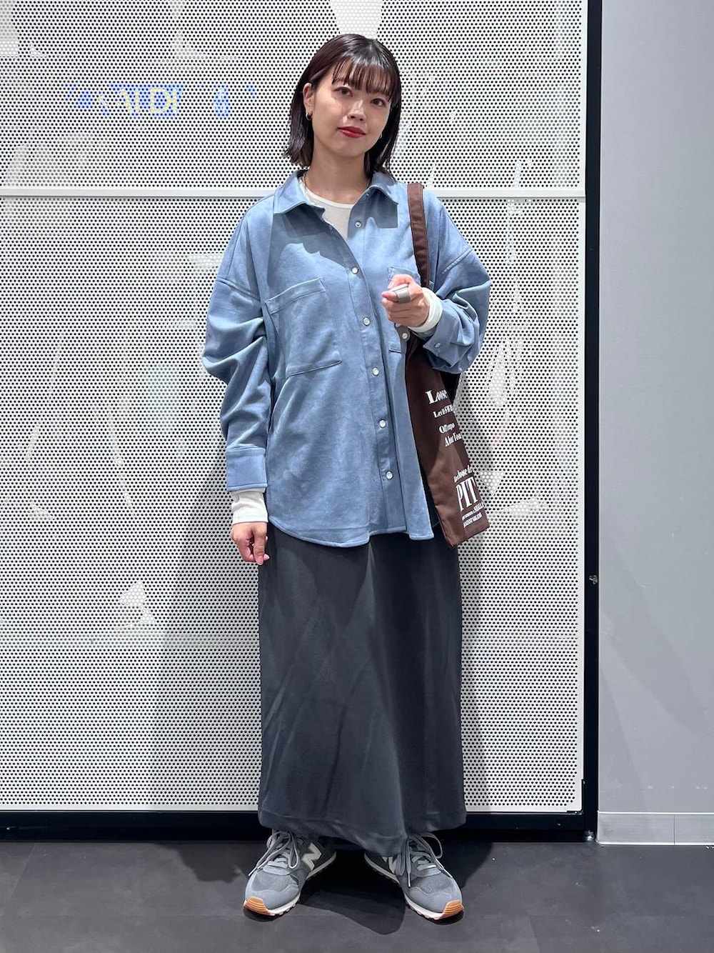 スカート→M着用。ウエストゴムで伸縮性があるので楽ちんです! シャツ→スウェード素材のシャツで温かみがあります!お尻隠れる丈感◎