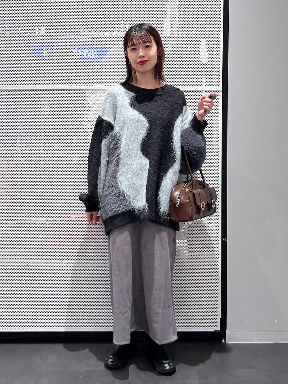 ニット→異素材がオシャレ!お尻しっかり隠れるくらいの丈なので安心◎ スカート→Mサイズ着用。スウェード素材がこれからの時期ぴったり!!