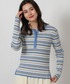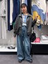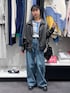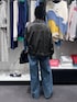 ジャケット→肌触りなめらかなレザージャケット。薄手なので今の時期は重ね着も🙆♀️ ニット→ヘンリーネックなので1枚でオシャレ。ブルー系のボーダーが春らしい✨️ デニム→コクーンシルエットなので腰周り、お尻周りをカバーできます。またヴィンテージ感ある加工がオシャレ!